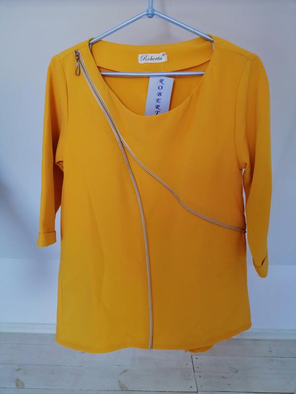 Стильна блузка, з замочками, які застібаються. Розмір M. Гірчично-жовтого кольору.