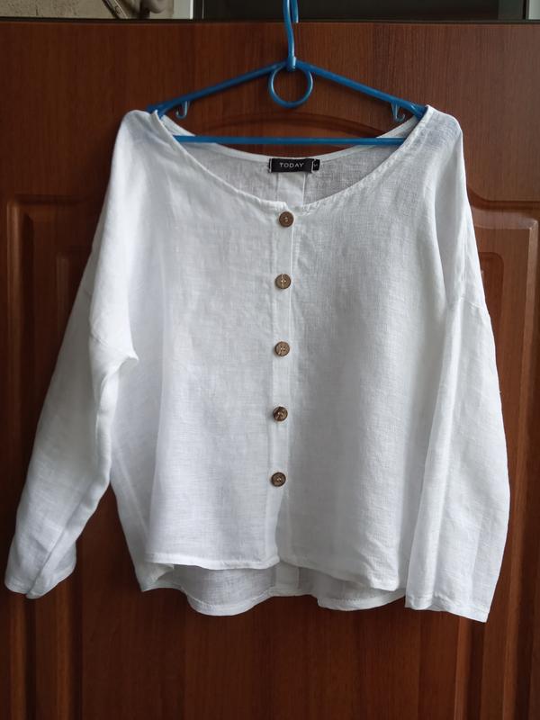 Белый кроп топ на пуговицах. Модель оверсайз. Стан - идеальный. Размер указан S. Пр-во Италия. Замеры: ПОГ-59 ПОН-53 Дов. рукава от выреза-59 Дов. рукава по нижнему шву-35 Ш рукаву по верхнему шву-18 Ш рукава снизу-13,5 Дл. по спинке-55 см ширина выреза -28 см. Ткань 100% лен. Производство Италия.