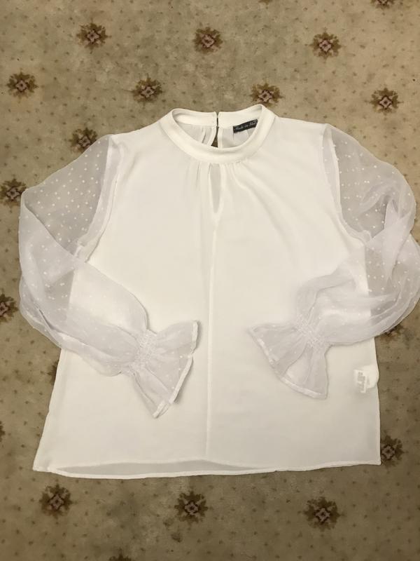 Очень красивая блузка Цвет белый Покупала ради рукавов, одевала под кардиган или жилет Очень нежная Длина 61 см Плечи 36 см Рукав 61 см ПОГ под мышками 51 см