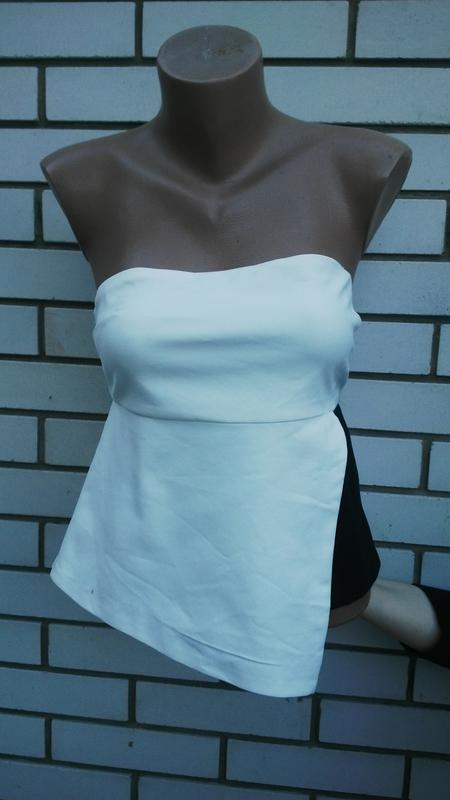 Красивый,ассиметричный,черно-белый топ(блуза)из плотной ткани,открытой спиной и замочком п...