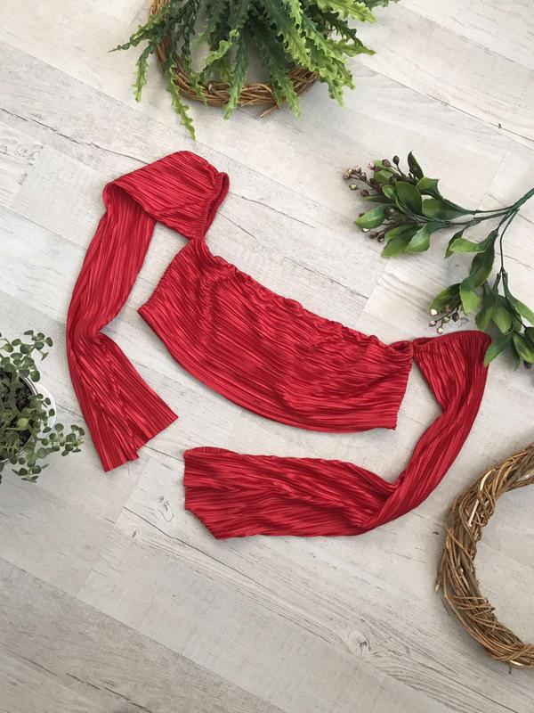 Блуза топ in the style красный короткий длинный рукав обнаженный плечи сексуальный плиссе С/М длина рукава 53 см пивобхват топа 38-48 см длина топа спереди 17 см Арт. К-015*