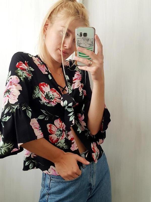 Шикарна блуза у принт квітів від Topshop Стан - ідеал Розмір - S Довжина - 55 см Довжина плеча - 10,5 см Довжина рукава - 40 см Пів-обхват по грудям - 43-45 см Пів-обхват по талії - 36 см 100%ПЕ Мої параметри: 170 зріст/90/73/98 см
