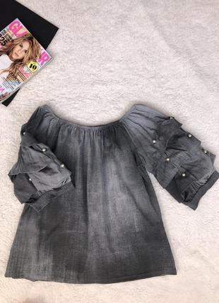 Шикарная блуза с объёмными рукавами. Декор бусинки пришиты . Верх на резинке можно носить с приспущены на плечи. Цвет амбре темно серый переходящий в светло серый цвет. Свободного кроя. Идеально новая вещь. Производитель Италия. Замеры Длина-48 П.о.г-39 Длина рукава-34