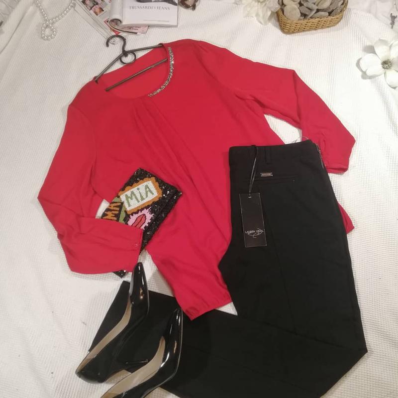 Блузка, свободный крой, внизу свободная резиночка Цвет красный, на фото цвет чуть искажен. ✔️Размер L-XXL✔️ ✔️Состояние идеальное ✔️ Грудь 126 см Длина 71 см РУКАВ 60 СМ