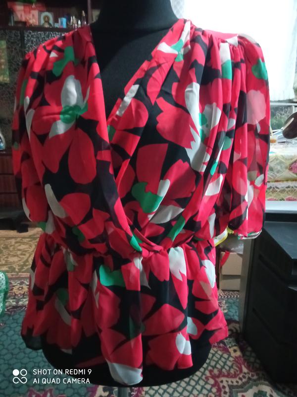 отличная блузка с лаской,на запах.длина65см,плечи 44см,рукав 36