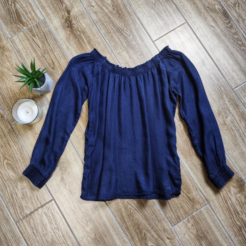 💙 Нежная блуза без выточек глубокого синего цвета от бренда Reserved. Плечи в ней остаются открытыми, это очень выгодно подчеркивает ключицы, состояние новой. Ткань вискозная. 📏 Замеры: длина 47, ширина 53, рукав 51