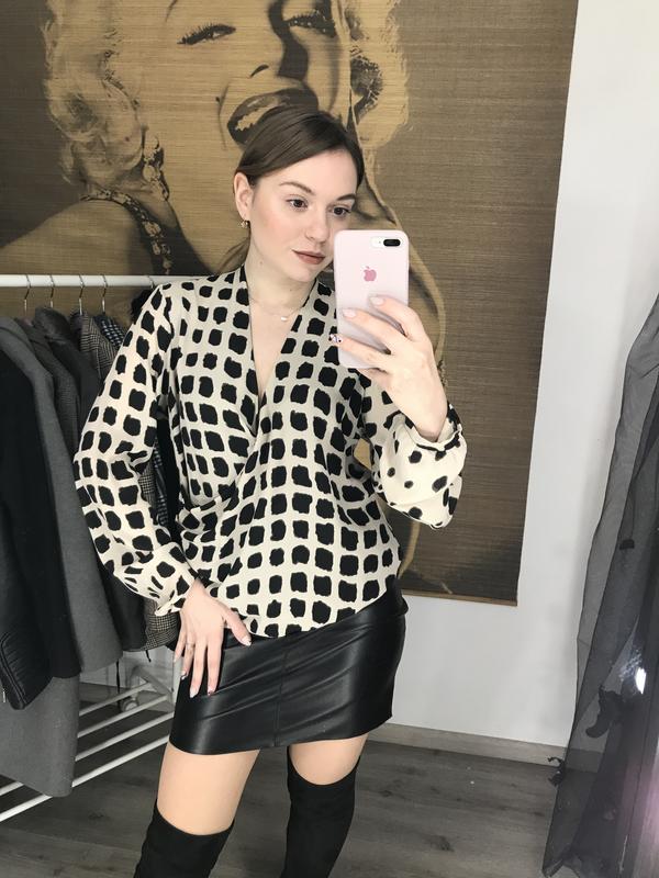 Блузка з цікавим принтом . Розмір М . Стан ідеальний . Всі фото без фільтрів . За деталями звертайтесь в дірект . Додатково відправлю відеоролик .