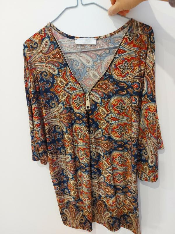 нарядна блузка подовжена, дуже приємна до тіла, рукав 3/4, летюча миш, декоративний і працюючий золотий замочок(регулювання вирізу декольте)