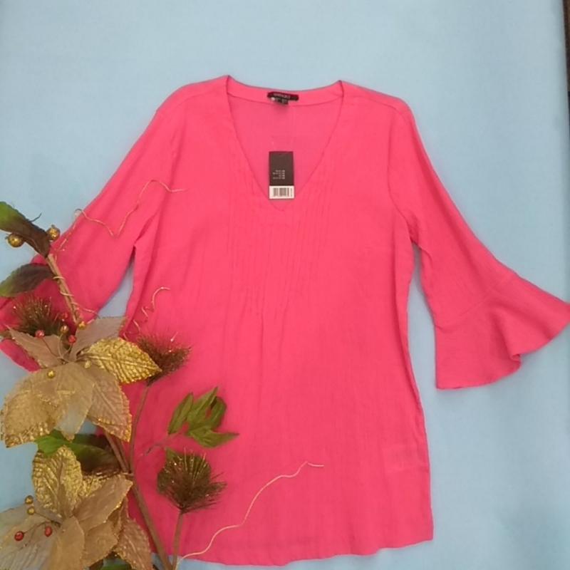 Дуже гарна, якісна, м'яка, приємна до тіла, легка. Розмір : L - XL ПО під руками 54 см, довжина - 72 см. Дам відповіді на всі додаткові питання.
