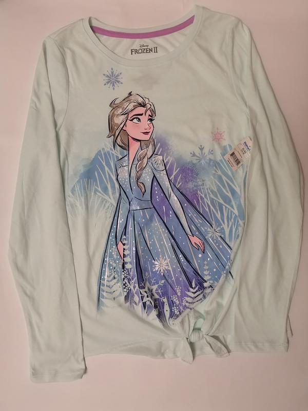 Кофточка Frozen на 14 - 16 лет. Ткань приятная к телу, нежная, в составе 60% хлопок, 40% полистер. Длина од подмышки вниз по боковому шву 39 см, плечи 34 см, рукав от плеча 62 см, полуобхват груди 40 см. Кофта в носке не была, новая, есть маленькая бумажная бирка, на фото видно. Смотрится стильно.