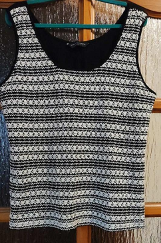 нарядная блузка/майка р.22 идеально жакет или кофту, вязаный с рисунком перед/гладкая спинка по 56см. пот 55см. поб 61см. длинна 66см.