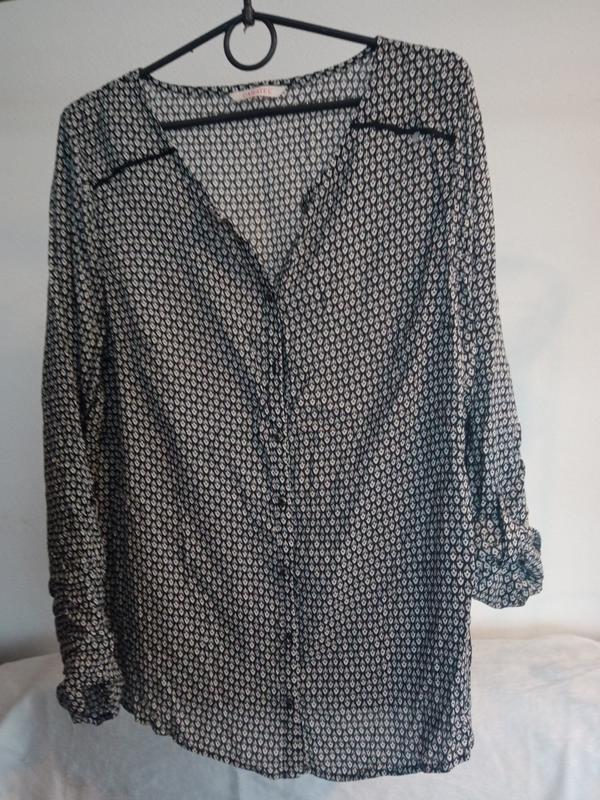 Блуза французского бренда CAMAIEU,ПОГ-52см, длина рукава-65см, пристегивается на пуговицу (длина45см), длина блузы-75см.