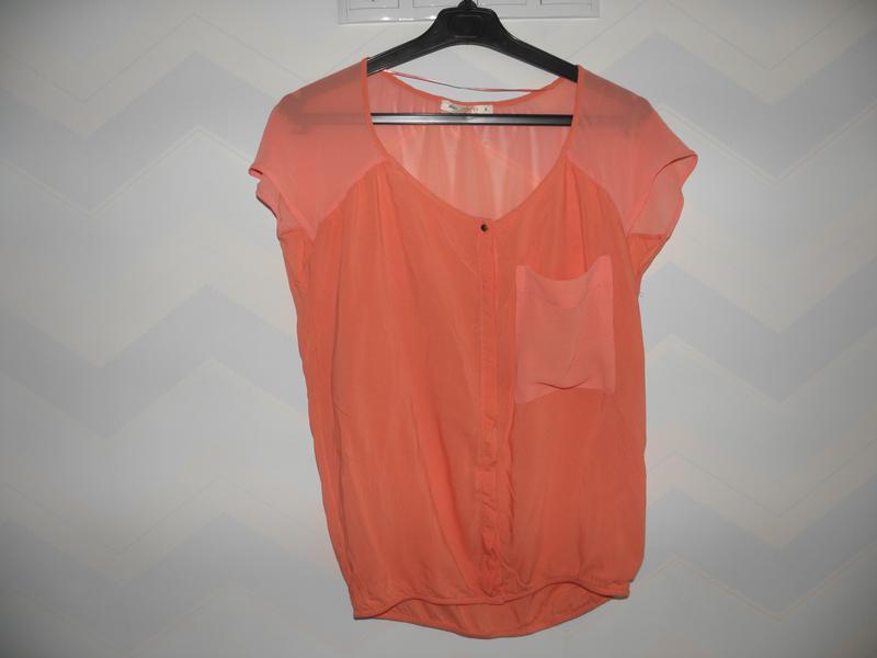 Стильная блуза Bershka красивого цвета коралл в состоянии новой вещи. Одета 1 раз.Бирки срезаны. Размер S. Легкая и практичная.