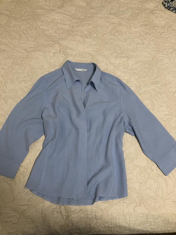 Блуза небесно блакитного кольору. Крутий варіан як під джинси, так і до класичного низу. На розмір М ( як оверсайз), до ХЛ. Стан нової речі Заміри ПОГ 54см Довжина по спинці 67см Рукав46см ( ширина 19,5см)