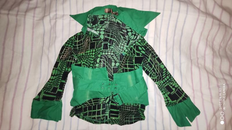 ЧУдова прикольна блузка зелено- чорного кольору. Дефектів немає . Купували на ринку за 120 грн. Підійде для носіння окремо так і під костюм. Тільки для жінок ,які знають ,як одягатися 😉