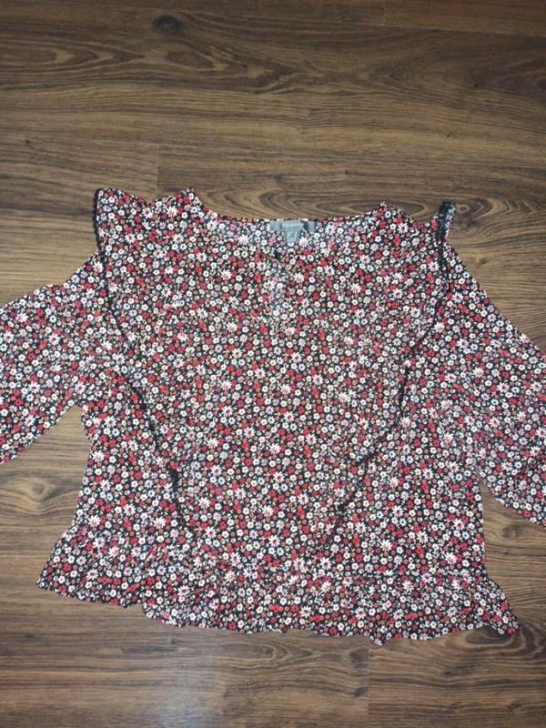 гарна блуща,квітковий принт,понизу рюшечка