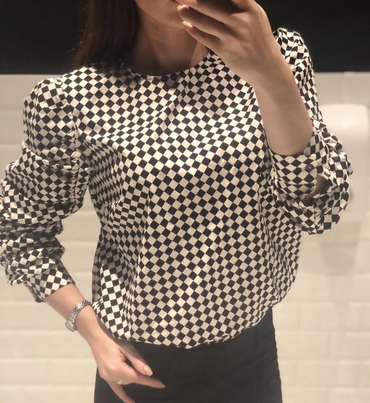 Блуза в чорно білий ромб Розмір 42 , моломер на фото одягнене на s. Підійде на s і M хто носить 100% cotton Виміри: ПО грудях - 48 Довжина по спинці - 59 Рукав - йде як лампочка , повітряний .