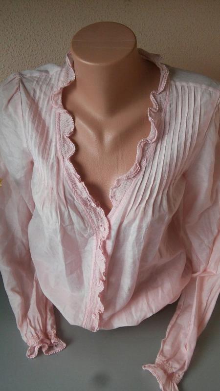 Невесомая блузочка, на лето отлично! Ткань на ощупь как батист шелковистый. Малюсенькие пуговки, внизу и на рукавах резиночки. Размер 34, но может подойти и на больший. В идеале, только нет верхней пуговки, но она и не нужна особо. ПОГ 47, рукав 63, длина 62, резиночка внизу 33, тянется до 50.