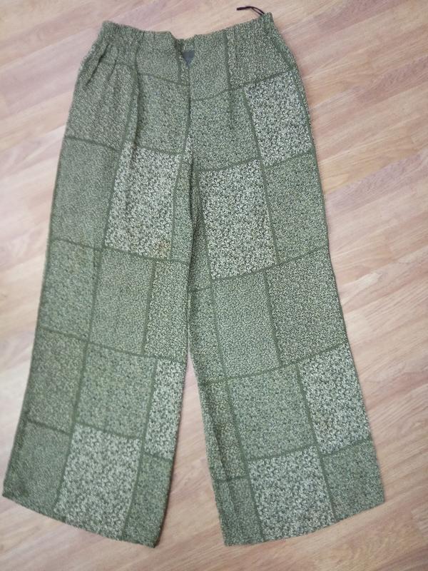 ❀Шикарный, стильный, воздушный, летний брючный костюм свободного кроя; ❀ Размер 48-50 ❀ткань тип шифона; ❀Цвет оливковый ❀В тунике по бокам разрезы. ❀Туника на трех пуговицах Замеры туники: ПОГ50 см ПОТ46 см длина от плеча 86см ❀Брюки на подкладе, по бокам резинка (на фото) длина ПОТ 40+2 см (резинка) ПОБ 54см ширина по всей длине одинаковая - полуобхват 33см. ❀Нюансик - молния вверху разошлась (на фото). В остальном все в отличном состоянии.