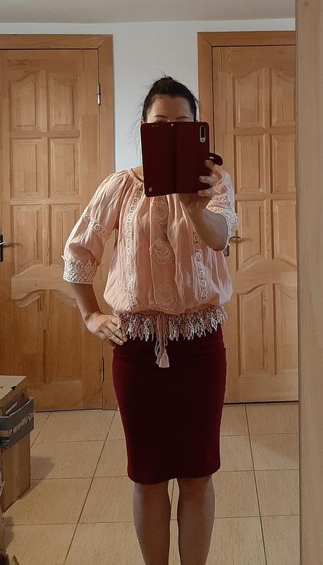 Блузка. Красивого стилб. Турція. Розмір L на фото одягнено на розмір S. Є ризинка на поясі та на шиї. Можна приспускати на плечі. Колір як на фото ,ніжний відтінрк.Нова.Заміри на фото. Перешлю укрпоштою,новою поштою після оплати на карту приватбанку, будь ласка враховуйте комісію банку при оплаті.