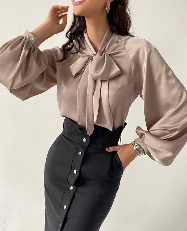Блузка за 590 грн Мод 343{Савой} Размеры 42-44,44-46 Ткань шёлк армани Цвета : чёрный , темно-синий , беж , молоко