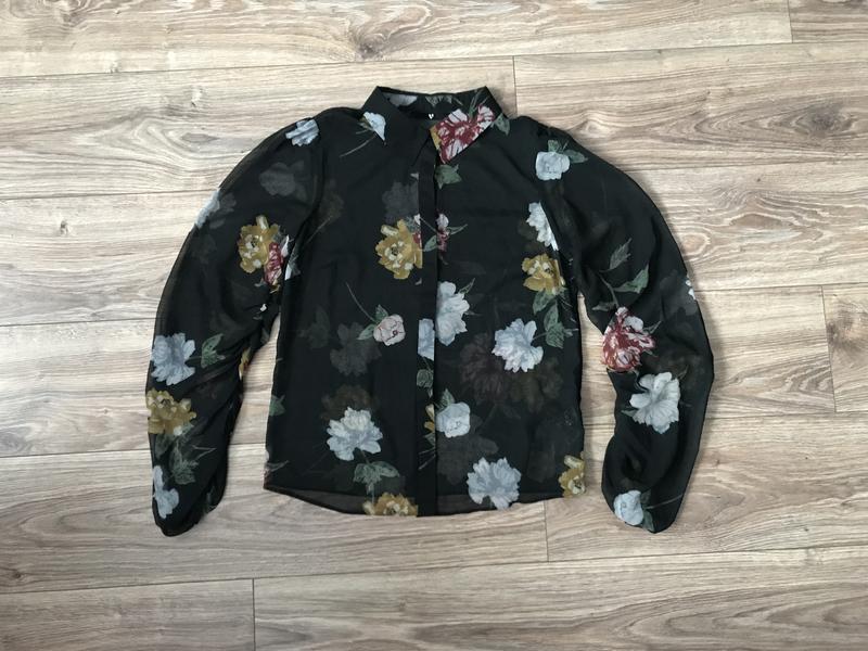 Блуза з цікавими об’ємними рукавами Розмір вказаний 8{хс-с} Не носилась, сток Заміри: по грудях 45 см{прямий крій}, плечі 36 см, рукав 60см, довжина 61 см