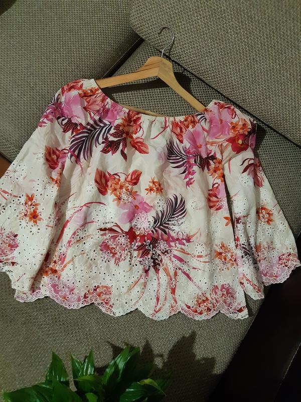Блуза идет с объёмными рукавами и резинкой на плечах, можно носить как с открытой зоной декольте и плечиками так и закрытыми Размер: 36 (s-m), длина: 50 см, ОГ= 44 см, длина рукава: 52 см Блуза идет абсолютно новая, бирка срезана