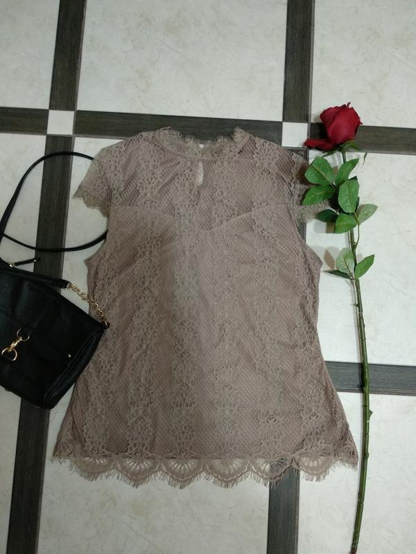 Бежева (кавова) гіпюрова блузка, розмір 12. Товар обміну та поверненню не підлягає.