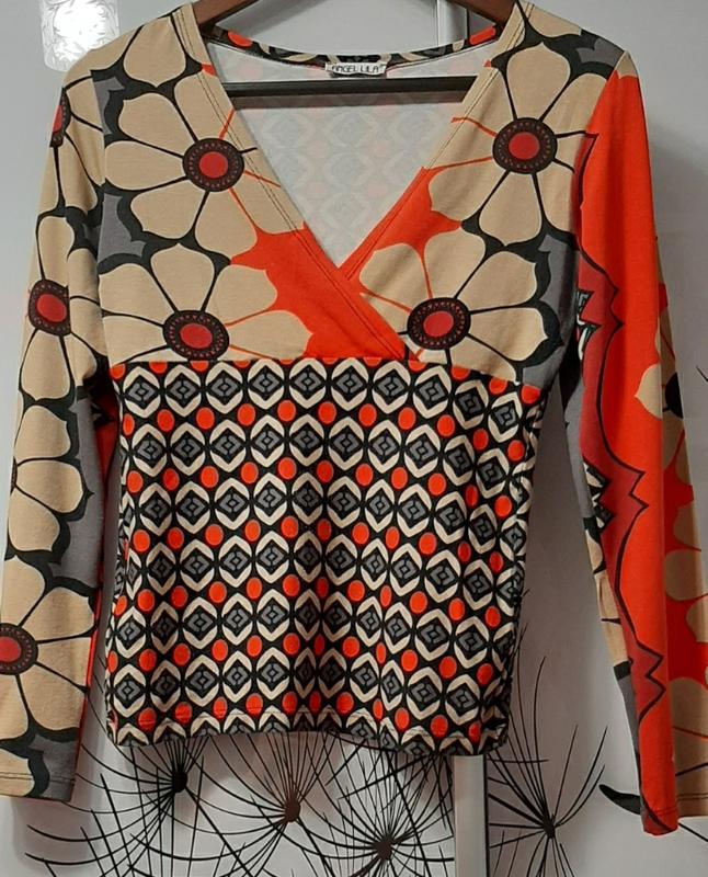Очень эффектная блуза с ярким принтом.Выполнена из натуральной вискозы,поэтому очень комфортная.Верх отрезной,на легком запахе.Блуза хорошо садится по фигуре. Замеры: ПОГ=46÷50см и тянется ПОТ=36÷40см и тянется ПОБ=40÷48см и тянется Плечо=9см Рукав=56см Длина блузы=56см Пересылаю по предоплате на карту Приватбанка или ПУМб.По деталям заказа пишите в чат.