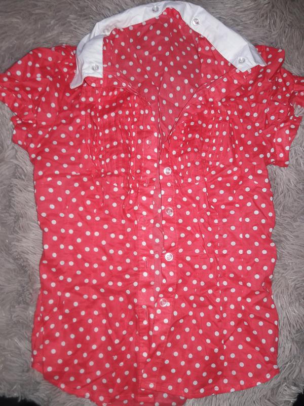 Яскрава блуза червоного кольору в білий горох.Розмір42/44.Відправляю Новою і Укрпоштою після 100%оплати на карточку.