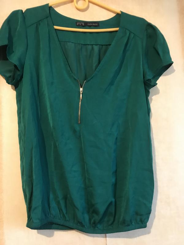 Ярко-зелёная блузка с золотистой молнией на резинке