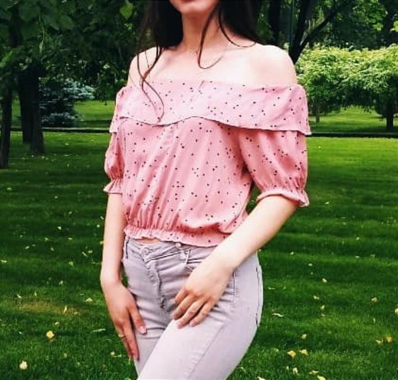 Красивая укороченная блузка, пудровая с чёрными сердечками. Плечи можно спускать и поднимать. Длина - 34 см до резинки ПОГ - 48 см Рукав 25 см, по внутреннему шву - 11 см Доставка: Новая почта, Укрпочта.