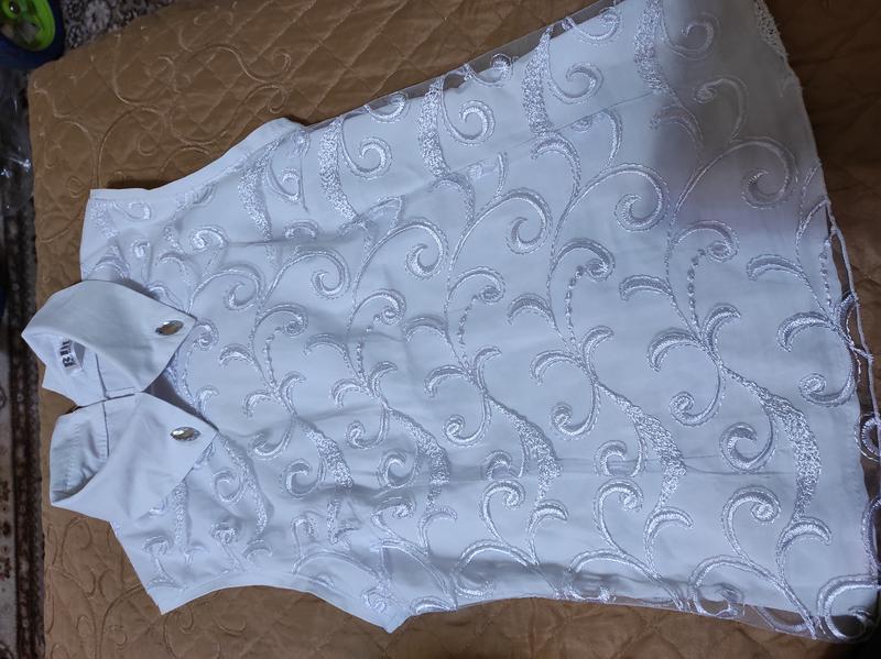 Белая батистовая блузка с вышивкой на фатине впереди. Приталенная. Замеры: Грудь 44-47 Талия 39-42 Низ 44-50 Длина 59, сеточка чуть ниже, плюс 1 см. Только меряная , без бирки.