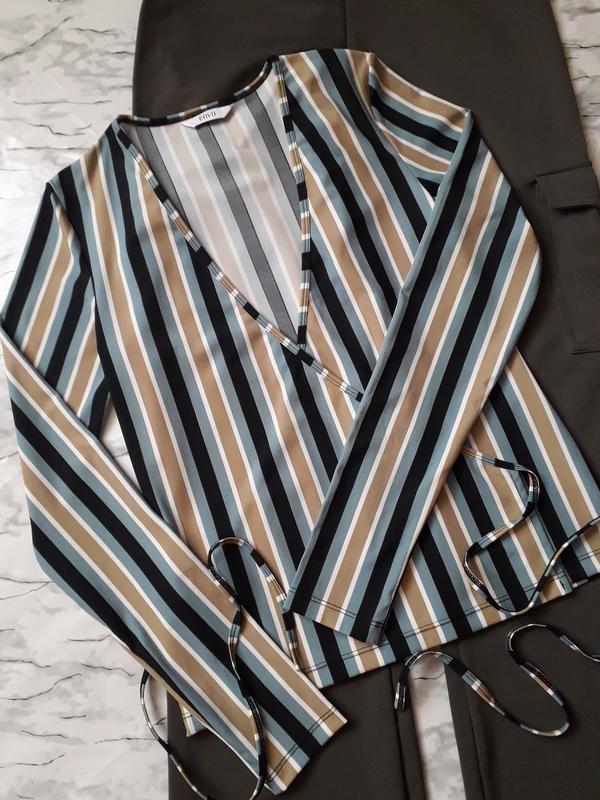 Стильная блуза датского бренда.Красивое модное цветовое сочетание.Ткань гладкая,эластичная,тянется. Блуза на запах,на завязке. Классно смотрится. Замеры в спокойном состоянии: Плечи 33+ Пог 38+ Рукав 61 Высота 55 Полиэстер 92% Эластан 8% Обмена и возврата нет!Оплата 100% на карту Приват.Всем отличных покупок!