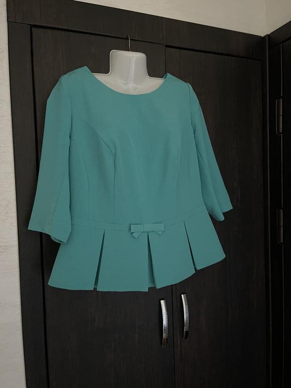 Блуза украинского бренда Petro Soroka. На подкладке, дорогая костюмная ткань. Цвет ярко-бирюзовый! Новая. Распродажа после закрытия магазина. Смотрите другие объявления. Много одежды размеров 50-56.