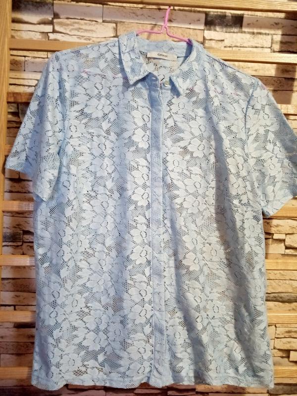 Блуза нежно голубого цвета.Розмер 44-48.В идеальном состоянии.Длина 60см;шырина в груди 49см.