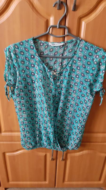 Легкая, воздушная блузочка,имитация на запах, интересный покрой рукава.