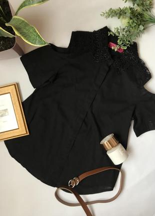 Стильна блуза з відкритими плечима та гарним мережевним воротнічком