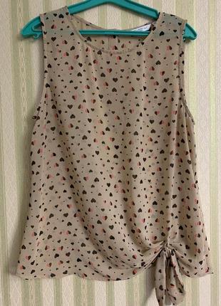 Стан дуже хороший Світло-коричневого кольору в сердечка Шифон Застібається ззаду на три ґудзики Спереду внизу зав'язка Є непомітні затягування вказала в ціні враховано Виміри Плечі 34 Пог 49 Піт 51 Побіди 55 Довжина 68
