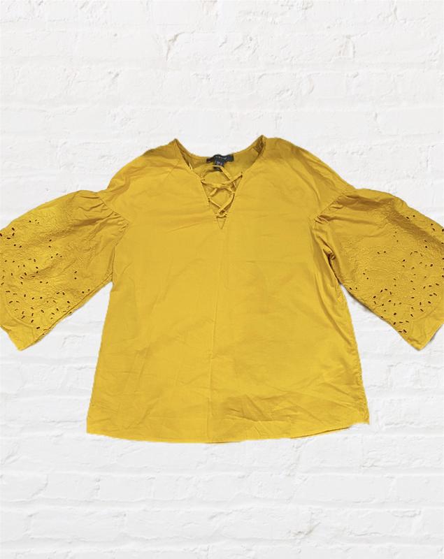 Гірчичний колір, не ношена .Можна заправляти в джинси або на випуск.Ширина під руками 46 см