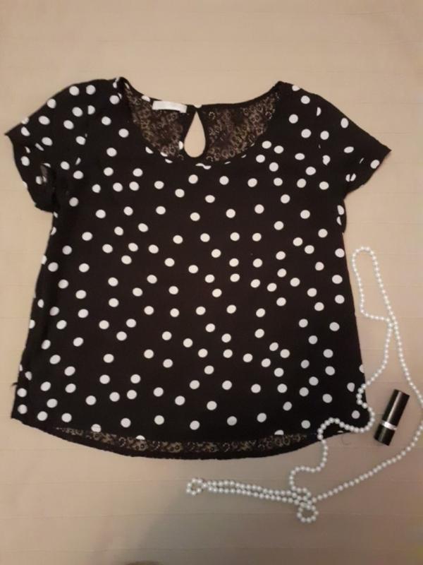 чаріна в горошок блузка.спинка мережево.Вона чудова