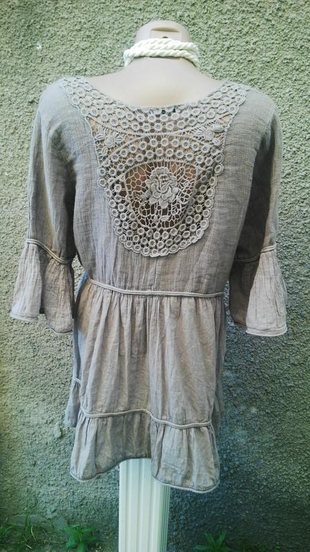 Красивая льняная блуза с воланами на рукавах,туника с кружевом по спинке,этно,бохо,италия
