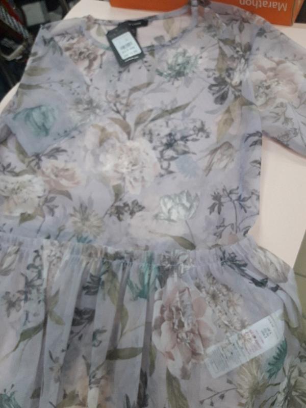 Блуза летняя, пудровый цвет с цветочным принтом. Размер UK 6, EUR 34. Ткань 100% полиэстр.