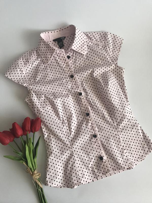 Блузочка на весну-літо! Елегантна та витончена! Розмір :XS(може підійти і на S) Колір:світло-рожева (пастельний відтінок) в чорний горошок. Всі додаткові заміри - запитуйте в direct📩