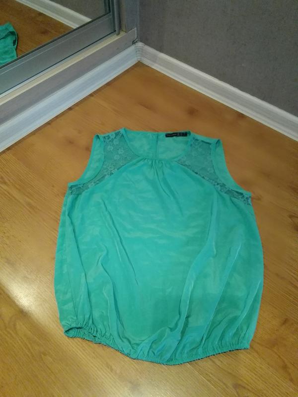 Бирюзовая блуза с ажурными вставками