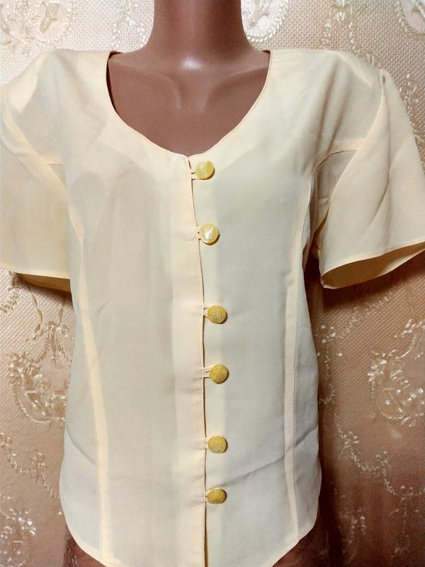 Легка шовкова блузка ніжно-жовтого кольору в дуже хорошому стані. Розмір 48. Розміри: ПОГ-52, ПОТ-45, ПОБІДИ-47, довжина-60. Відправлю після передоплати на карту. Дивіться інші мої оголошення з блузками.