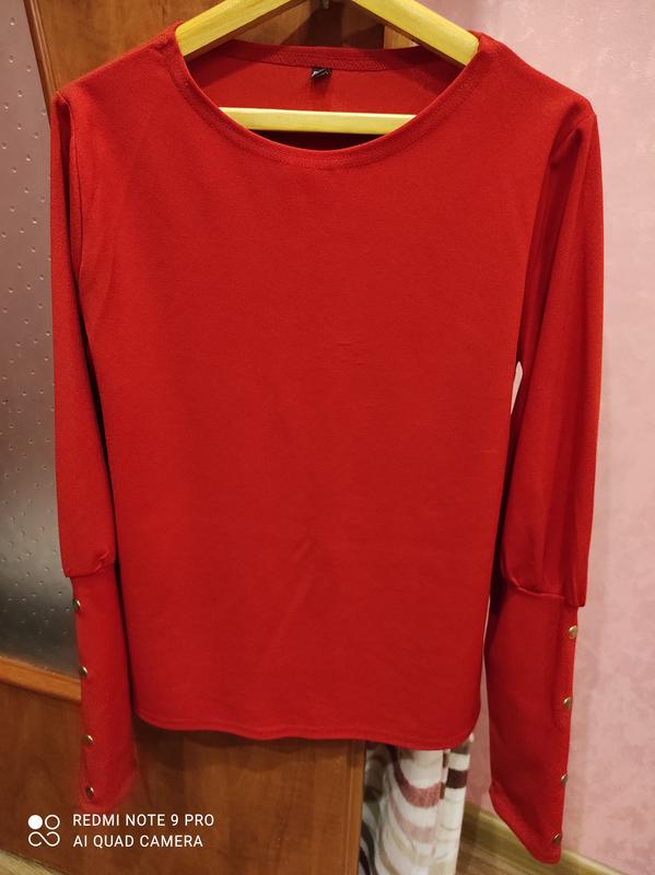 Блузка с объемным рукавом . На спине есть затяжки , на фото видно