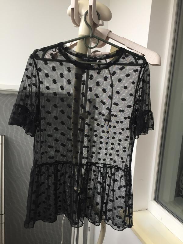 Прозрачная блуза в горошек, сетка