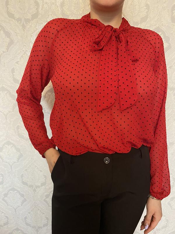 Очень красивая модная блуза.Легкая, приятная к телу. На размер М-Л. Цвет насыщено красный. Все замеры по запросу. Не хоженная.