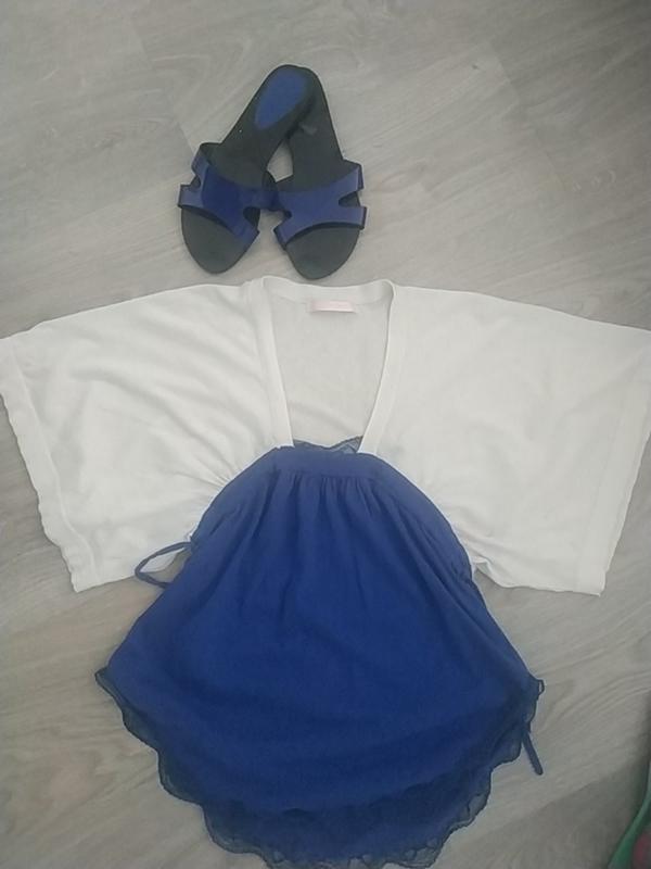 мягкая трикотажная блуза,по бокам затягивается.Без дефектов и нюансов. Длина 50(по бокам) 62 Под грудью 35.5 (+-)